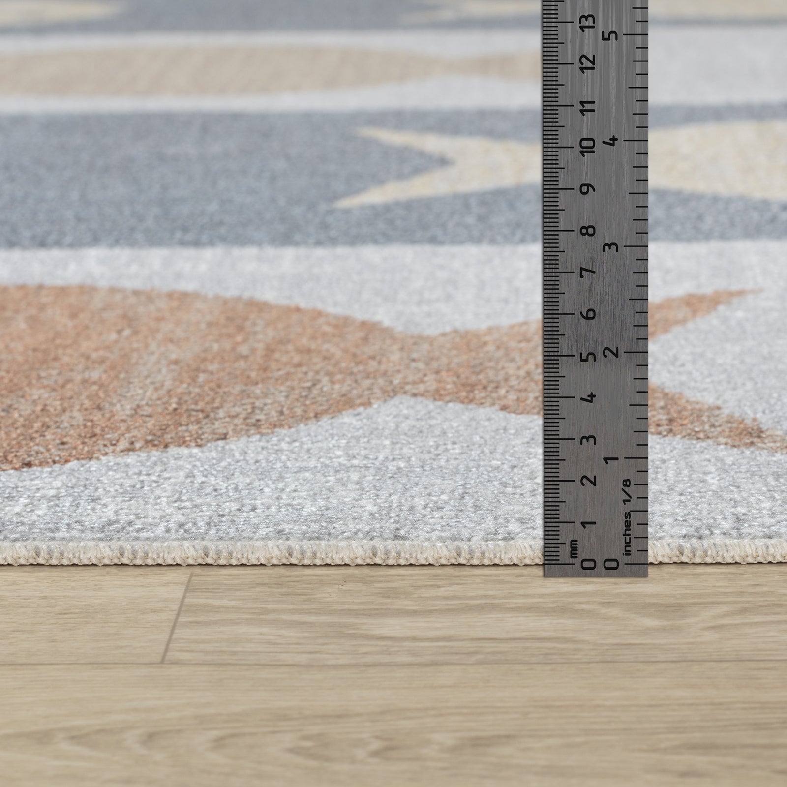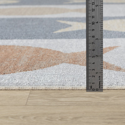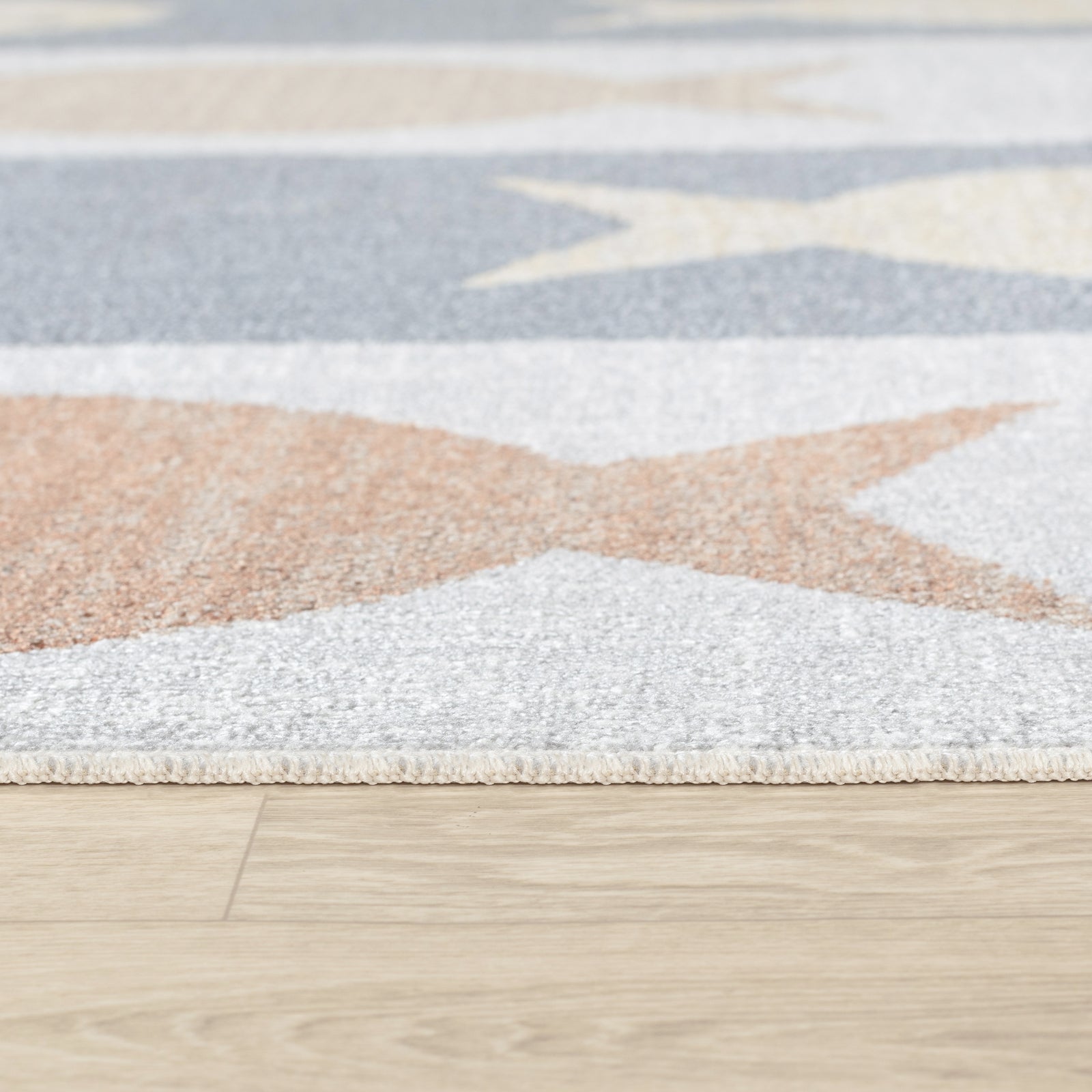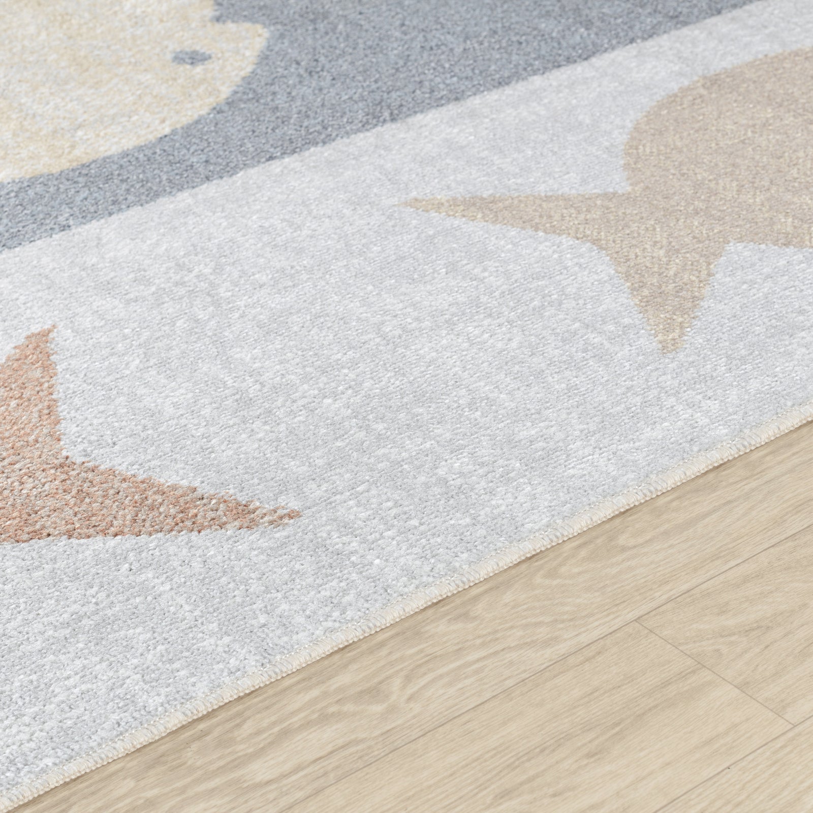 Tapis Enfant Lavable en Machine Poissons Beige/Gris/Orange Pekin