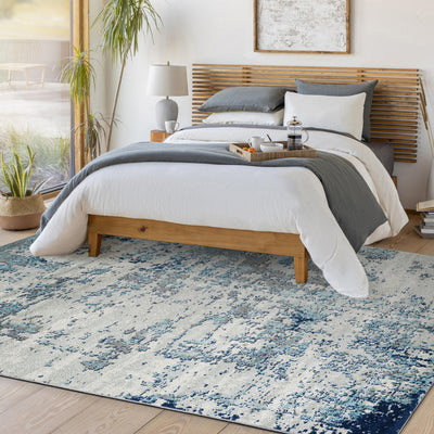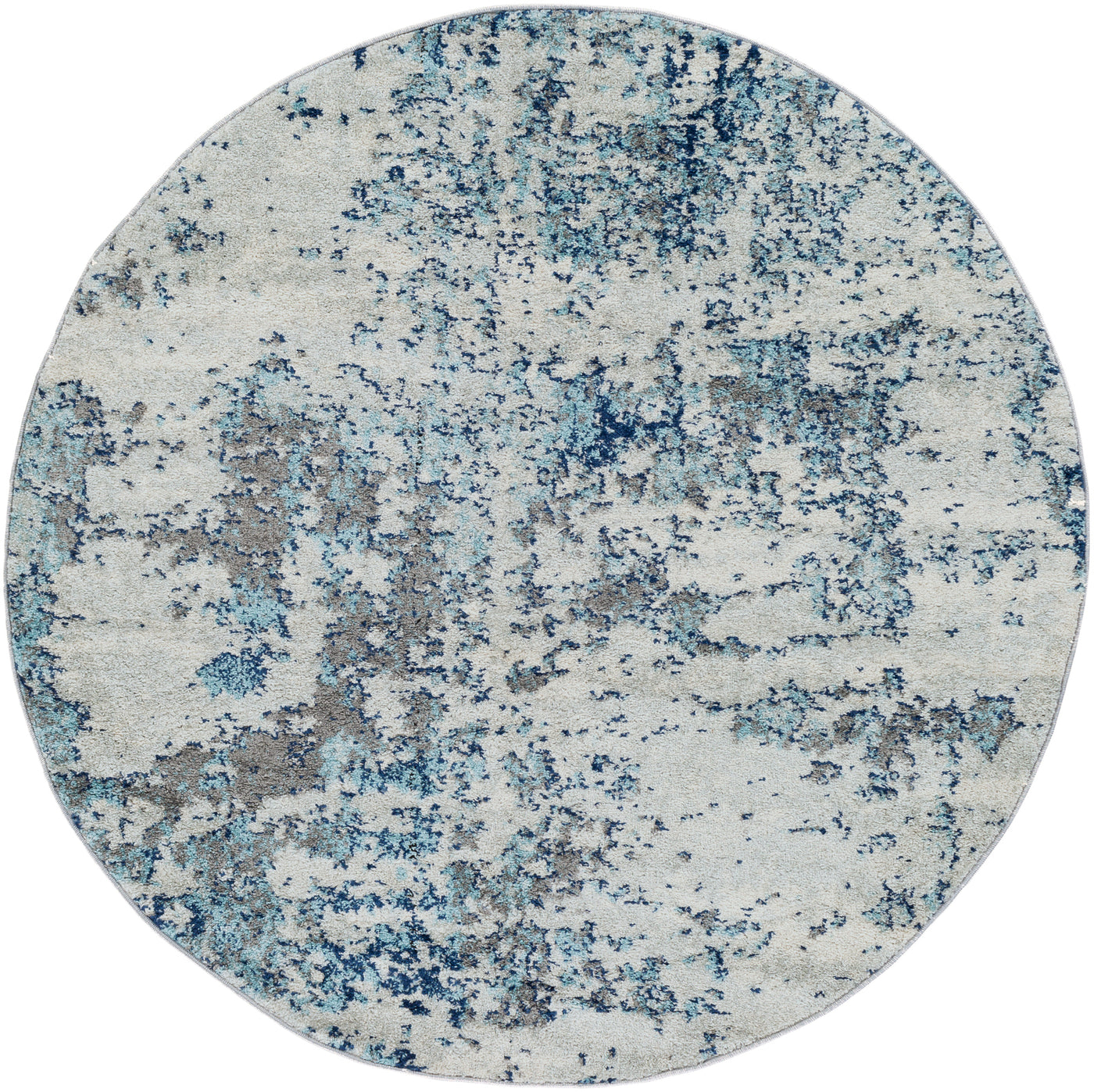 Tapis Rond Abstrait Moderne Bleu/Gris/Blanc Rond Dunkirk