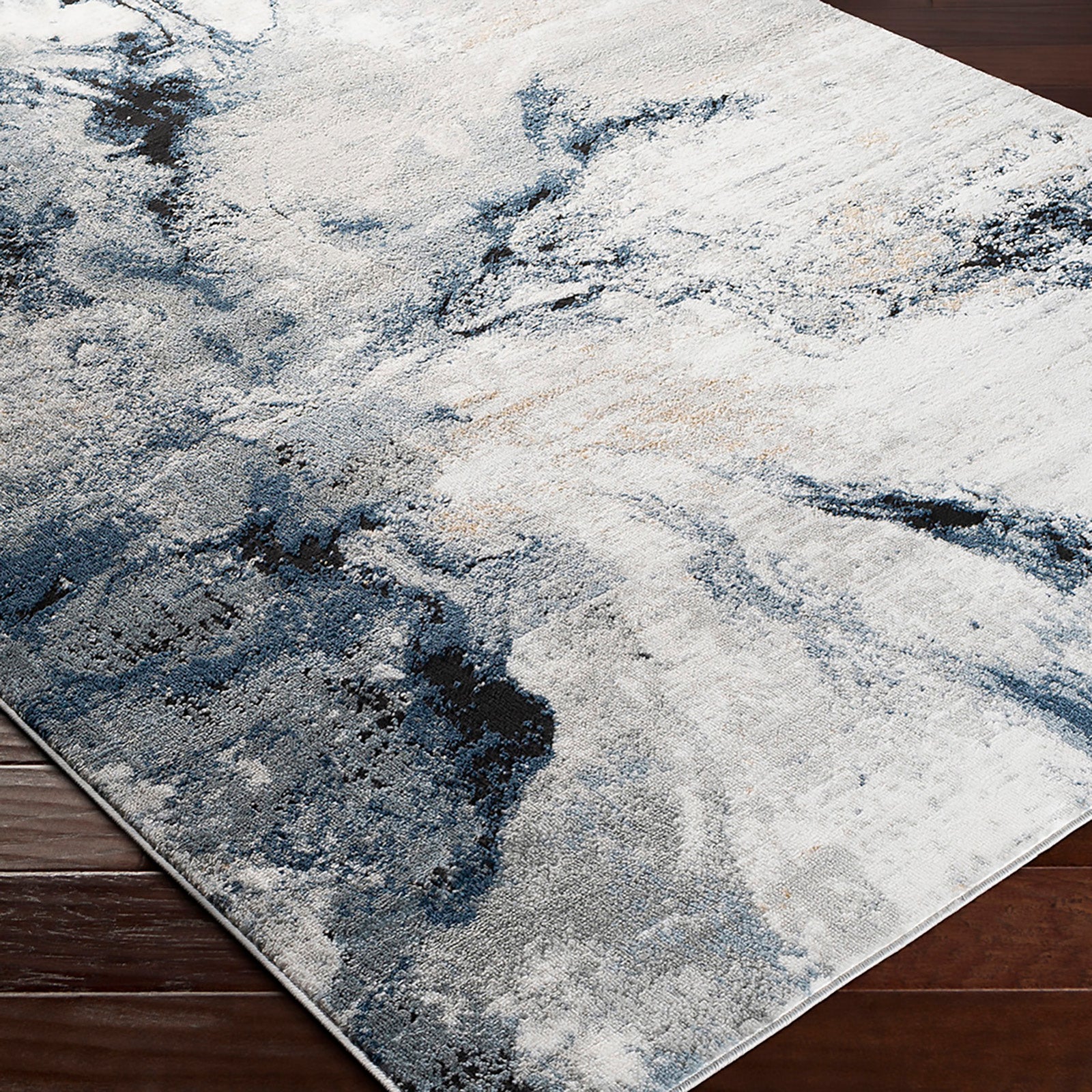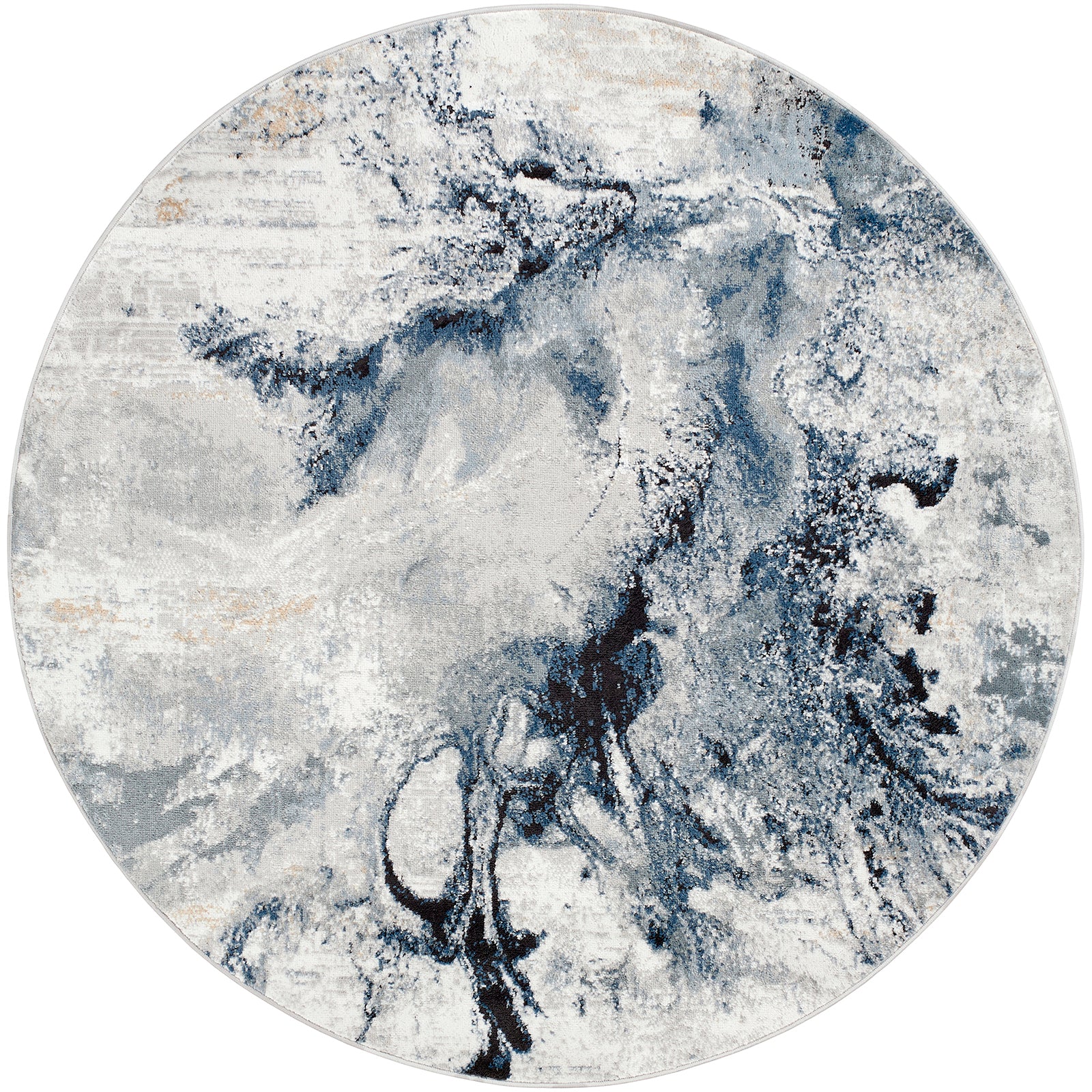 Tapis Rond Abstrait Moderne Bleu/Gris Rond New