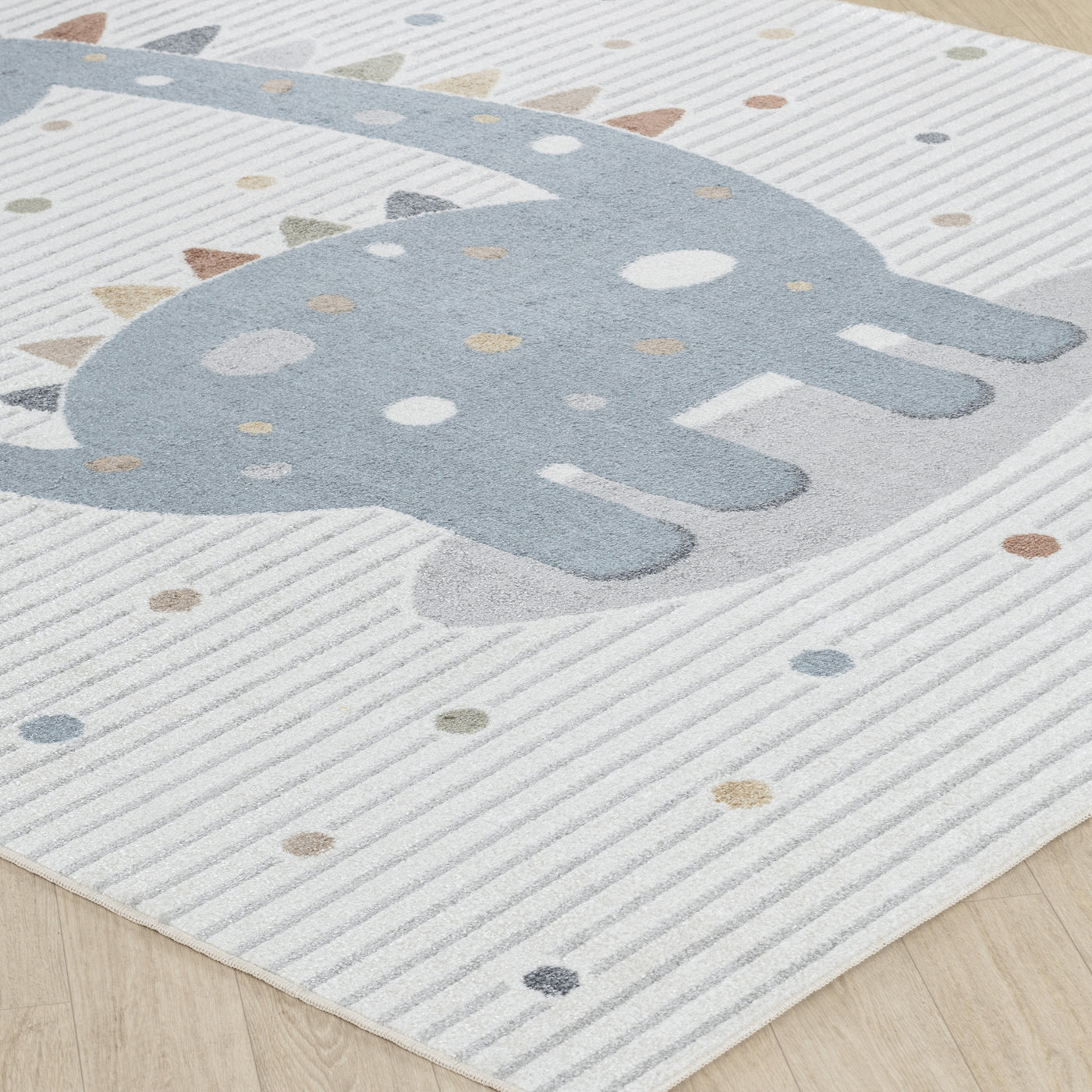 Tapis Rond Enfant Lavable en Machine Dinosaure Beige/Gris Rond Seoul
