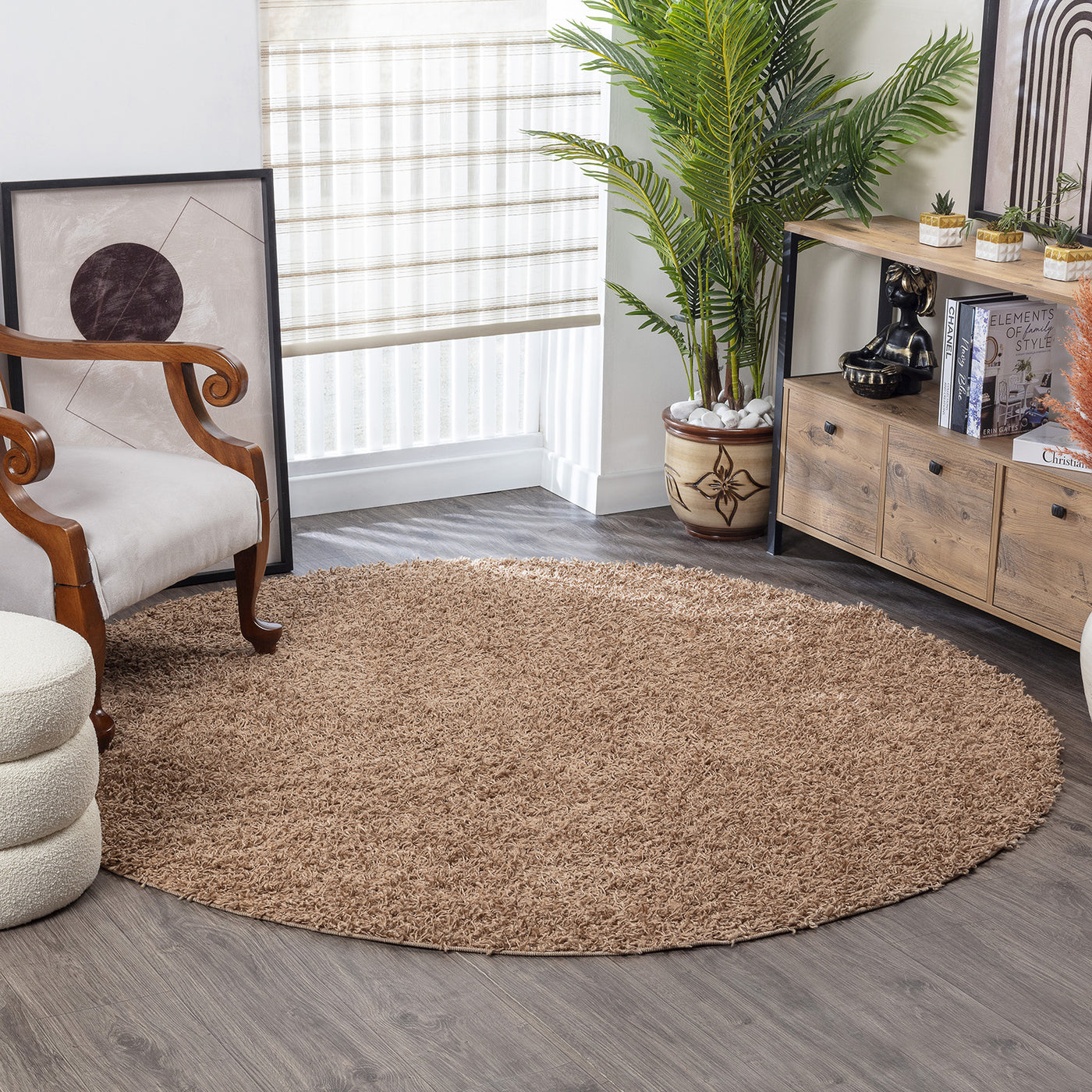 Tapis Rond Shaggy Moderne Beige Foncé Rond Boracay