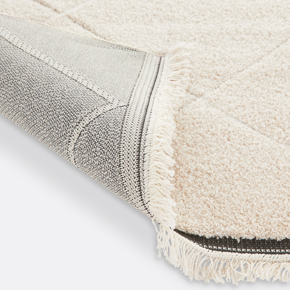 Grâce à son association de tissage tufté et tissage plat, ce tapis offre un subtil relief qui met en valeur ses motifs noirs sur fond écru. Son design sobre et moderne s’intègre facilement dans une décoration bohème, contemporaine ou scandinave.
