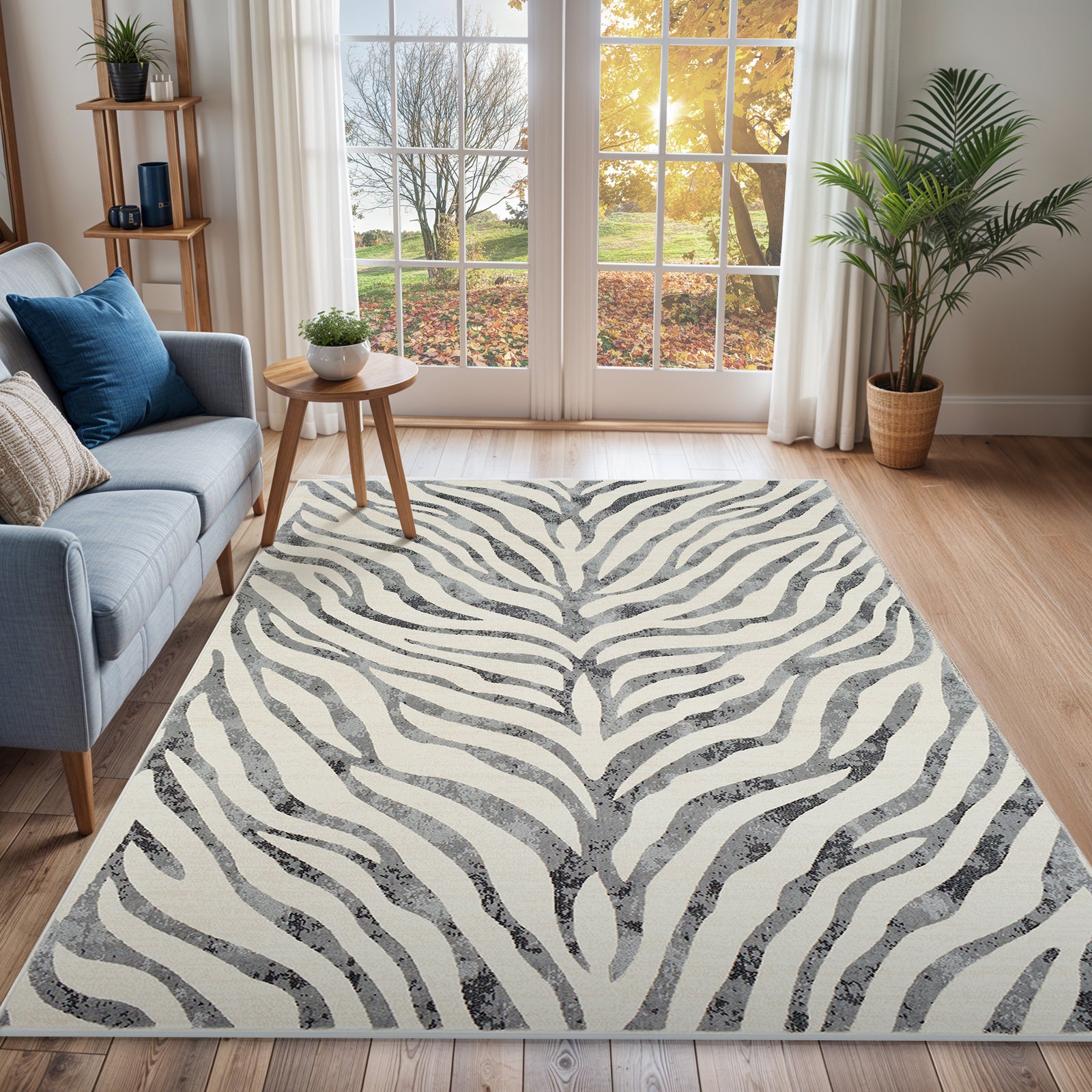 Tapis Zébré Bohème Gris Foncé/Beige Luanda